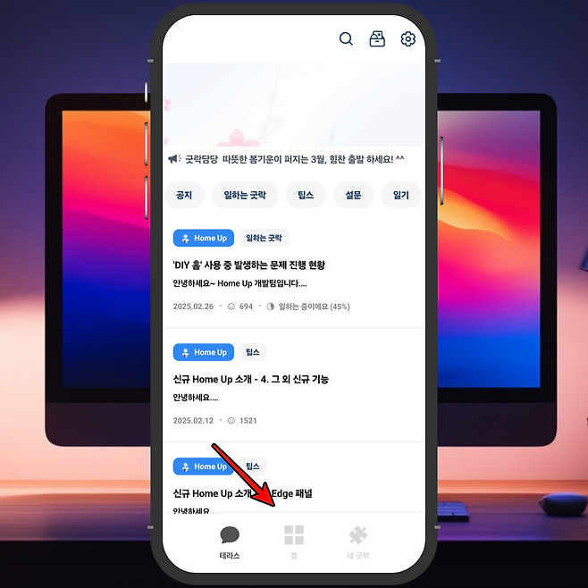 2) 하단의 앱 메뉴 선택