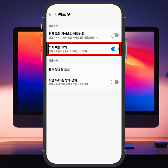 스크린샷을 찍자마자 바로 삭제할 수 있는 버튼이 나타나므로,