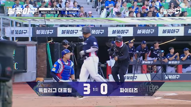 독립리그 대표팀은 김재원의 2루타를 시작으로 연속 안타와 장타를 몰아치며 순식간에 3점을 올렸다.