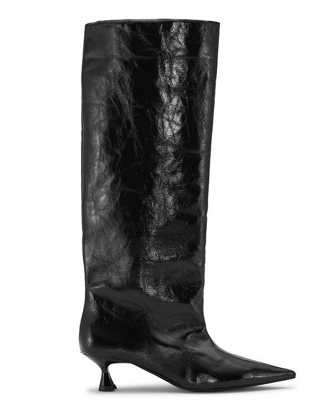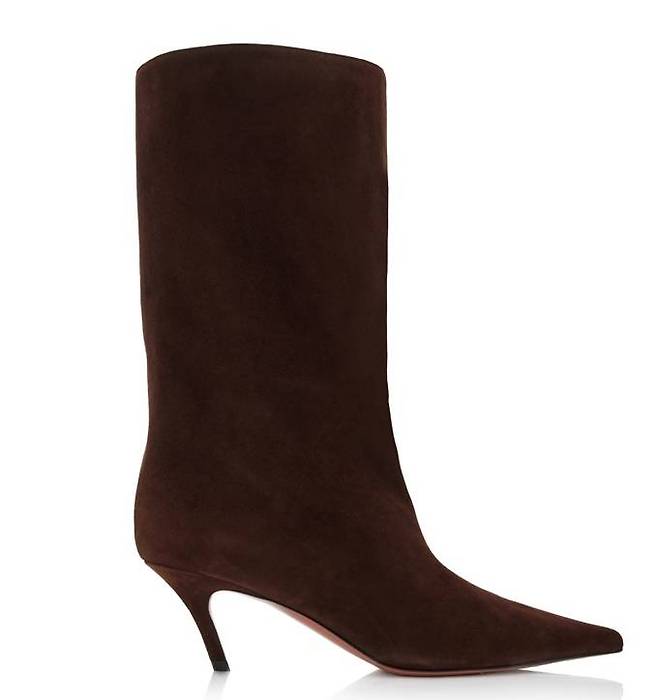 앞코가 날렵하고 굽이 아찔해 각선미를 돋보이게 한다. 검정 미니원피스에 부티힐을 신어 포인트를 주면 연말 모임이나 파티룩에 적합하다.