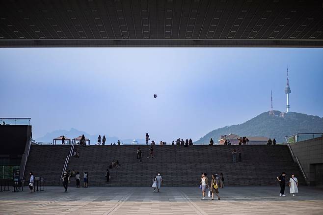 이외에도 정문 앞 야외 계단 구간 정면에서면 남산타워를 배경으로 예쁜 사진도 남길 수 있답니다.