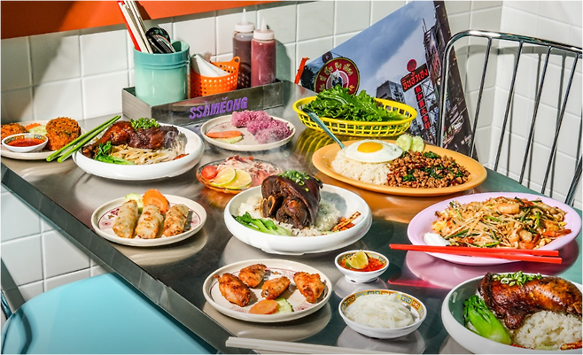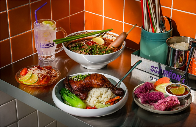 싸멍 본점에서는 태국과 베트남 요리의 조화를 이룬 메뉴를 선보이고 있어요. 족발을 활용한 덮밥과 쌀국수뿐만 아니라 태국식 볶음면(팟타이)과 샐러드(쏨땀)까지 다양한 요리를 맛볼 수 있어요.