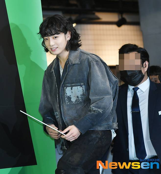 정국은 빈티지 느낌의 데님 재킷과 청바지로 스타일리쉬한 패션을 선보였다. 또 정국은 입술과 귀에 실버색 피어싱을 해 개성 넘치면서 힙하고 트렌디한 매력을 유감 없이 뽐냈다. 특히 정국은 앞머리를 모두 내리고, 귀여운 '뽀글 머리' 단발 펌을 하고 나타나 현장을 들썩이게 만들었다.