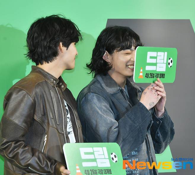 지난 4월 24일 서울 강남구 메가박스 코엑스점에서 영화 '드림' VIP 시사회가 진행됐다. 이날 정국은 박서준을 응원하기 위해 멤버 뷔와 함께 참석했다.