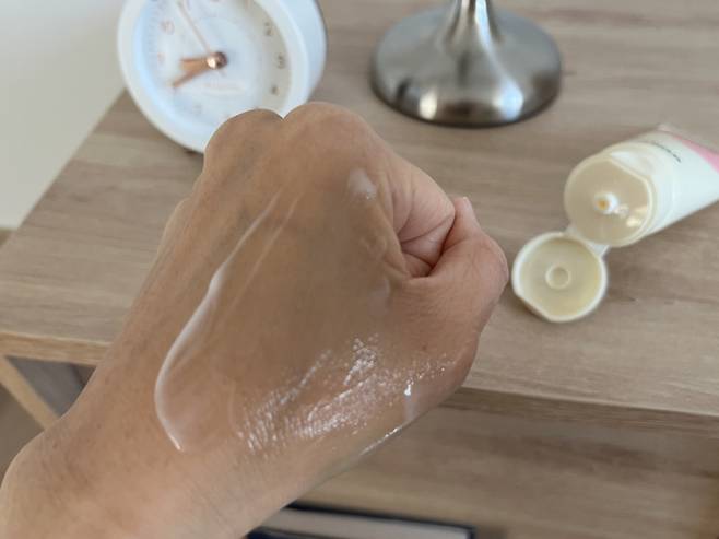 손등에 발라보니 부드럽게 착착 달라붙는 느낌이 납니다.
