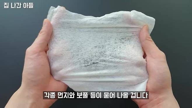 세탁 후 물티슈를 꺼내 보면 먼지와 보풀이 묻어 있는 것을 확인할 수 있어요.