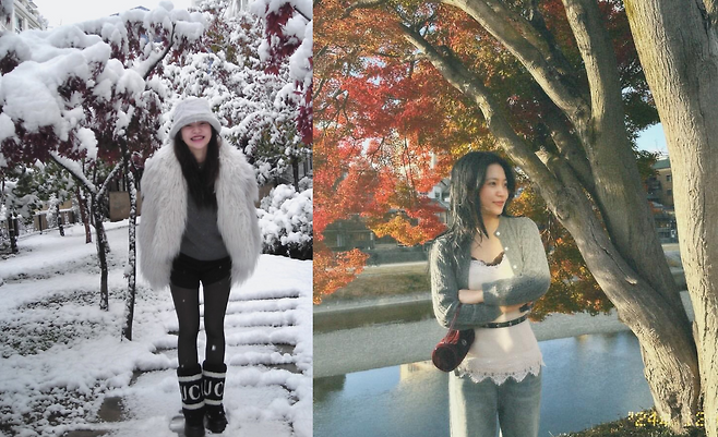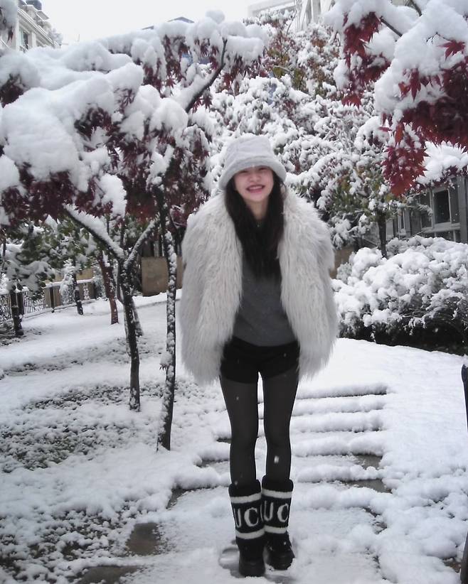 눈 덮인 풍경 속에서 예리는 흰색 퍼 코트와 회색 니트, 검정색 반바지를 매치하여 따뜻하면서도 스타일리시한 겨울 패션을 선보였다. 퍼 코트는 고급스러움을 더하고, 털 부츠는 보온성을 높여준다. 톤온톤 색상 매치를 통해 세련된 느낌을 강조했으며, 벙거지 모자를 착용하여 귀여운 포인트를 더했다.