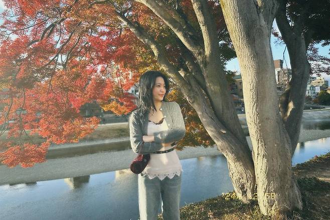 예리는 가을을 배경으로 한 사진에서 편안하면서도 스타일리시한 캐주얼룩을 선보이고 있다. 은은한 레이스 디테일이 돋보이는 상의에 회색 가디건과 바지를 매치하여 차분하면서도 세련된 분위기를 연출하고 있다. 여기에 톤 다운된 버건디 색상의 미니 백을 포인트로 더해 전체적인 룩에 깊이를 더했다. 자연스러운 스타일링으로 가을 분위기를 한껏 살린 모습이다.
