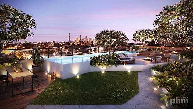 이 퀸즈랜드 아파트의 옥상은 그런 아파트 주민들의 니즈를 멋지게 반영하고 있다. 아파트에 사는 주민 누구나 이용할 수 있는 수영장과 테이블을 배치해 멀리 비치나 아파트 밖으로 나가지 않고도 여가를 즐길 수 있도록 훌륭한 공간을 만들에 모두에게 제공한다.