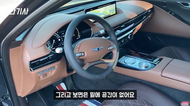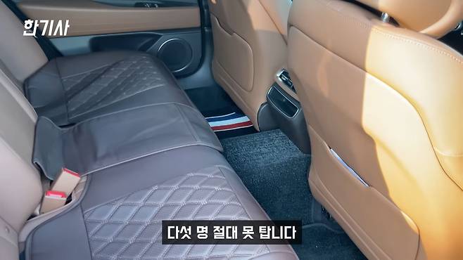 또 다른 단점은 뒤에 보면 레그룸 쪽에 턱이 튀어나와 있어요. 차 설명 보면은 5인승이라고 돼있거든요. 근데 5명 절대 못 탑니다. 이 차 전장이 4,995mm예요. 그랜저는 4,990mm인데 그랜저보다 좁은 것 같아요. 둘 다 타봤는데 확실히 좀 좁더라고요. 그랜저 대비해서는 실내가 조금 작고 공간 활용이 뭔가 아쉽더라고요.
