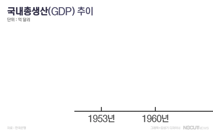 6·25 전쟁 후 대한민국은 세계 그 어떤 나라보다 가난했고 국토는 폐허가 됐습니다. 정전협정이 체결된 1953년 국민총생산(GDP)은 13억달러에서 불과했습니다. 1972년 사상 처음 100억달러를 돌파한 뒤 1985년에는 1012억달러로 1천억달러를 돌파했습니다. 이후 2006년 1조 524억달러로 사상 첫 1조달러 돌파 기록을 쓰는 데까지 걸린 시간은 53년이었습니다.