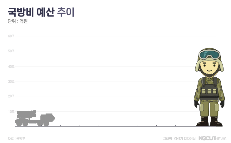 정전협정 70주년이 되는 올해도 북한의 끊임없는 도발로 남북한 간에 긴장 관계가 계속되고 있습니다. 대한민국은 1975년 4588억원이였던 국방비 예산이 매년 증가해 2023년는 57조 143억원으로 세계 10위권 국방비를 지출하고 있습니다.