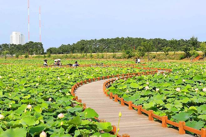 옛 조상들이 보았을 연꽃 사이로 조성된 산책로를 산책할 수 있어 핫플레이스로 떠오르고 있습니다. 나룻배체험장과 연꽃정원에서 드넓은 연밭과 고즈넉한 나룻배를 풍경으로 인상적인 추억과 사진을 남겨보세요.