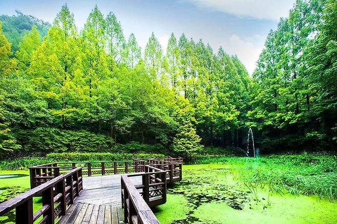 뿜어나오는 피톤치드와 풍경을 만끽하면서 산책하기 좋고, 주변 경관을 한눈에 볼 수 있는 스릴만점 출렁다리, 신비로운 생태연못, 숲속 교실 등 자연학습을 배우기 제격인 장소입니다.