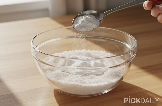 여기에 소금의 염화나트륨이 세균의 수분을 흡수해 번식을 억제하고, 냄새를 없애는 탈취 효과까지 더해준다. 식초보다 향 잔여감이 적고 금속·유리·플라스틱 등 다양한 재질에 안전하게 사용할 수 있다. 또한 베이킹소다 특유의 미세 입자는 가벼운 연마 효과를 내어 문틈이나 패킹 사이의 묵은 때를 제거하는 데도 유용하다.