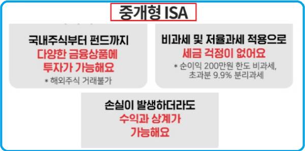 중개형ISA는 하나의 계좌 안에서 국내주식을 포함한 다양한 금융상품을 운용할 수 있는 계좌다. 절세혜택까지 겸비하고 있어, 부담해야 하는 세금을 줄이고자 하는 개인들이 활용할만한 필수계좌다. 2016년 도입된 ISA는 가입대상이 소득이 있는 자로 제한되고, 의무계약기간이 5년으로 길었다. 2021년에는 이러한 요건을 완화하여 만19세 이상(15세 이상 근로소득자 포함)이면 누구나 가입할 수 있도록 개편되었다.