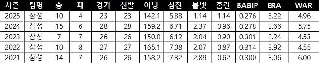 | ▲ 삼성 원태인의 주요 투구기록(출처: 야구기록실 kbreport) |