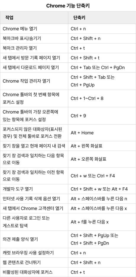 기본이자 필수 프로그램이 된 크롬의 유용한 단축키를 모아보았습니다.