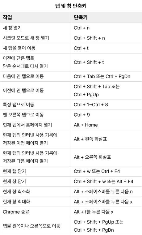 기본이자 필수 프로그램이 된 크롬의 유용한 단축키를 모아보았습니다.