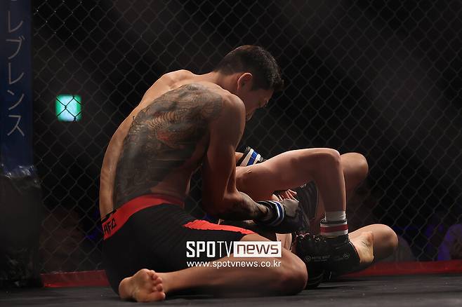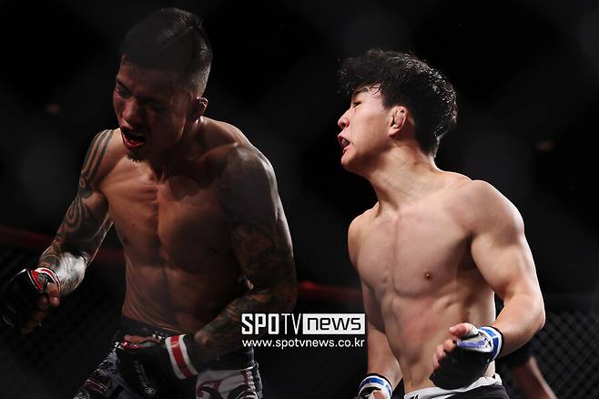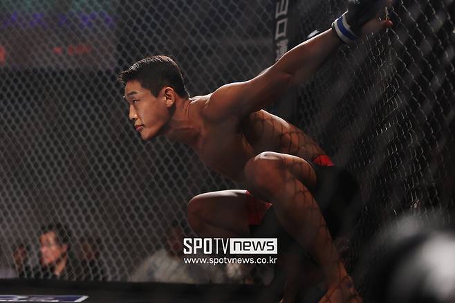 이번엔 29전(14승 14패)째 베테랑 오미치 쇼키(35, 일본)의 타격에 밀렸지만, 레슬링으로 테이크다운에 성공하고 상위 포지션에서 파운딩으로 점수를 따는 경기 운영 능력을 보여 줬다.