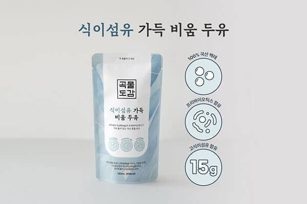곡물도감은 식이섬유가 가득 든 쾌변두유인 ‘식이섬유 가득 비움두유’를 출시했다. 식이섬유가 15,282mg으로, 하루 권장량의 61%를 함유하고 있는 식물성 단백질의 국산 두유다. 비움두유에 함유된 15g의 식이섬유 섭취를 위해서는 바나나 6개, 샐러드 3kg 이상을 섭취해야 얻을 수 있다. 두유 한 포로 포만감은 물론 식이섬유와 단백질, 칼슘까지 영양분을 채울 수 있다. 15개들이 패키지의 공식몰 판매가는 28,900원이다.