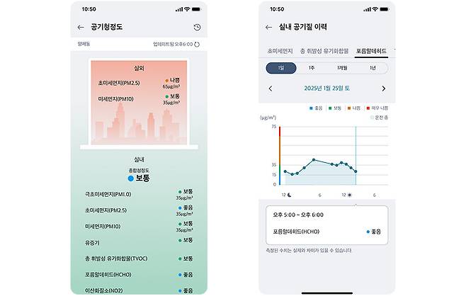 또한, 우리 집 공기질 데이터를 실시간으로 수집·분석하여 제공하는 공기질 리포트를 확인할 수 있으며, 전용 앱 LG ThinQ를 통해 현재 공기 청정도와 주요 오염원을 한눈에 파악할 수 있다.