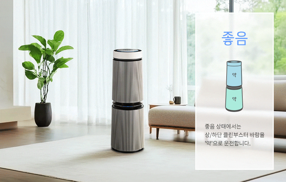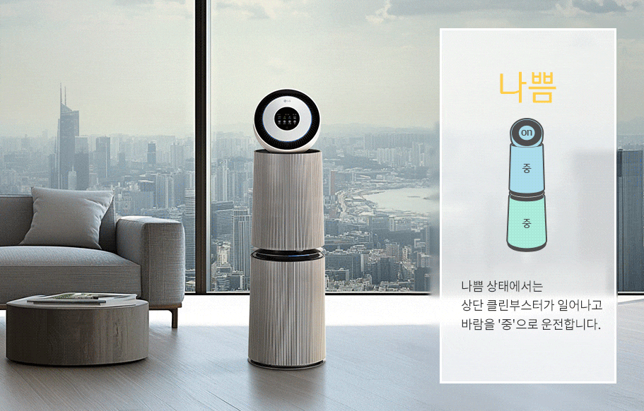 만약 이를 눈치채지 못하고 장기간 혹은 일정 농도 이상 노출되게 되면 인체 호흡기와 신경에 안 좋은 영향을 끼칠 수 있다. LG 퓨리케어 오브제컬렉션 AI+ 360° 공기청정기는 AI 공기질 센서로 정밀하게 오염원을 감지하고 오염 농도에 따라 제품을 스스로 작동하기 때문에 우리가 모르는 일상생활 속 유해가스를 알아서 제거할 수 있다.