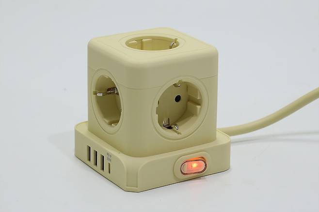 박스에는 별다른 구성품 없이 멀티탭 본체만 담겨 있다. 기본적인 디자인은 일반적인 바 타입의 멀티탭과는 완전히 다른, 이름처럼 큐브 타입으로 되어 있으며, 본체와 전선이 동일한 색상으로 되어 있어서 통일감을 준다.