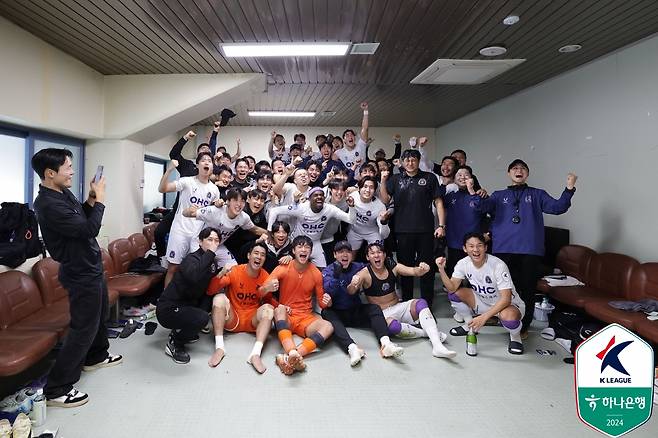유병훈 감독: 김포FC와 3라운드 로빈 경기 때 1-1로 비기다 후반 추가시간 버저비터를 넣어 2-1로 승리했다. 당시 '우리 다이렉트 승격할 수 있겠다'는 생각이 들었다. 확신이 든 것은 3연패 뒤 치른 부산아이파크전(4-1 승)이었다.