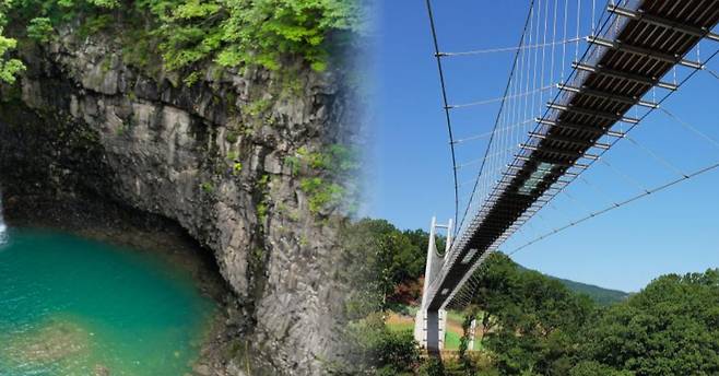 최근에는 폭포 인근에 '한탄강 하늘다리'가 개통되어 더욱 다양한 각도에서 폭포와 주변 경관을 감상할 수 있게 되었습니다. 다리에서 바라보는 비둘기낭 폭포의 전경은 또 다른 매력을 선사합니다.
