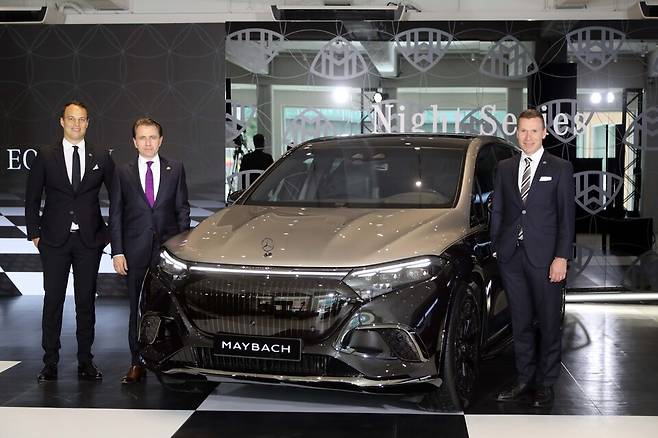 메르세데스-벤츠 코리아는 25일 서울 성수동에 위치한 복합문화공간 XYZ 서울에서 마이바흐 브랜드 최초의 순수 전기 SUV 모델 '디 올-뉴 메르세데스-마이바흐 EQS SUV와 블랙과 실버 색상을 조합한 투톤의 45대 한정판 모델 '메르세데스-마이바흐 나이트 시리즈를 공개했다. 이들 차량은 8월 중 인도사 시작될 예정이다.