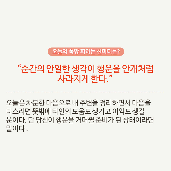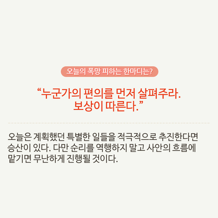 최소한 오늘 폭망은 피하게 해주는 참 고마운 띠별 오늘의 운세! 오늘 최소한 이것만 알면 폭망할 일 없어요.
