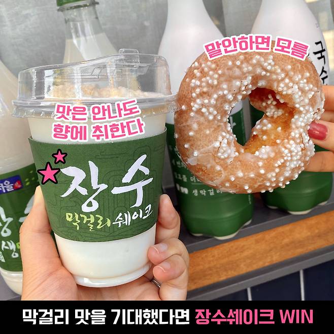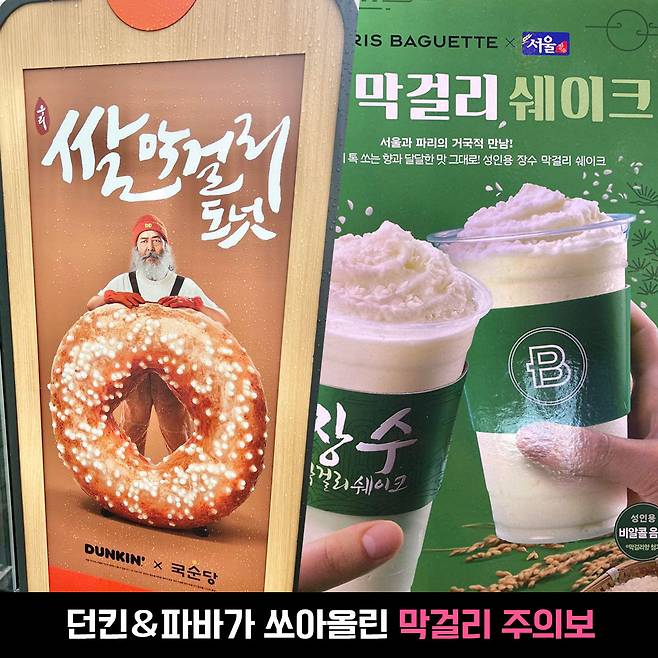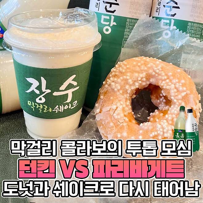 던킨과 파리바게트 앞에서 만난 막걸리 콜라보의 주인공. 바로 우리쌀막걸리 도넛과 장수막걸리 쉐이크 되시겠습니다.