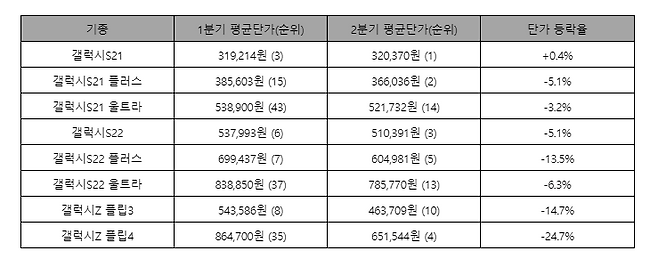 리퍼폰이란 정식 서비스센터에서 배터리, 액정 등을 교체한 중고폰을 의미한다. 리퍼폰 판매의 상위권은 1분기와 2분기 모두 20년 출시된 갤럭시S20과 갤럭시노트20가 차지하고 있다. 갤럭시S20의 경우 출시 당시에는 카메라, 스피커 등 다양한 문제로 혹평을 받았으나 현재 중고로 구매하기에는 가성비가 좋아 많이 구매하는 제품이다. 그리고 20년 단종된 갤럭시노트는 현재 갤럭시S시리즈 울트라가 계승하였지만 새제품 기준으로 150만원이 넘기 때문에 갤럭시노트의 편리함을 잊지 못하는 사용자들이 갤럭시노트20을 많이 찾고있다.