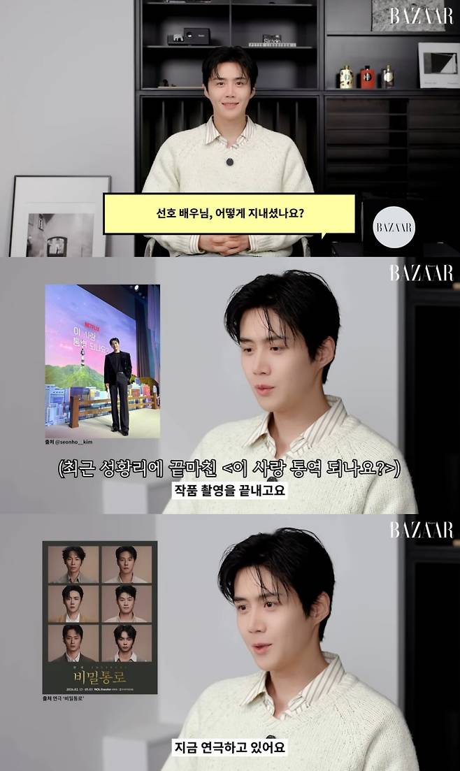 '연극 복귀' 김선호, 논란 후 직접 전한 근황 "쉬는 날 극한으로 누워 있어" (하퍼스바자)