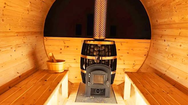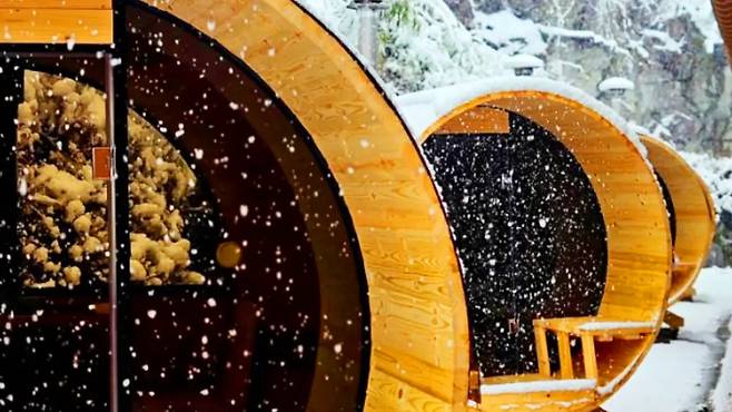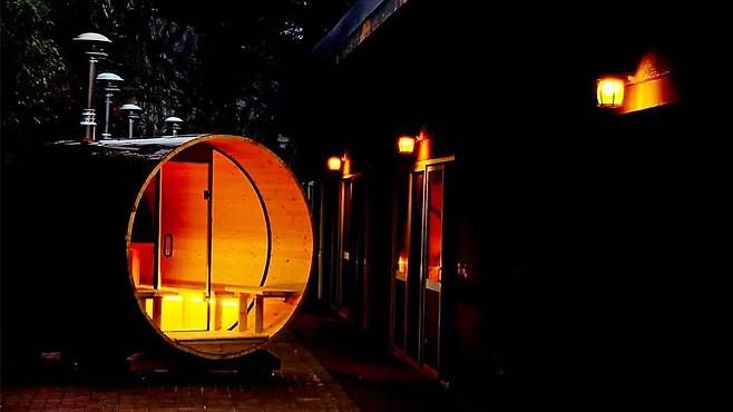 능암탄산온천의 또 다른 매력은 핀란드식 건식 사우나와 노천탕입니다. 나무 향이 은은하게 퍼지는 사우나에서 장작을 넣어 온도를 조절하며, 습도와 온도를 자신이 원하는 대로 조정할 수 있는 특별한 경험을 제공합니다.