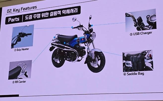 ST125 닥스는 히팅 그립, USB 충전 포트, 새들백, 리어 캐리어 등 다양한 액세서리를 추가할 수 있습니다.