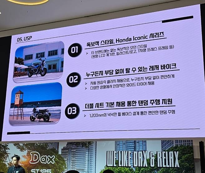 2023년, 혼다는 ST125 닥스를 새롭게 선보였습니다. 과거의 디자인을 계승하면서도 최신 엔진과 장비를 탑재하여 상품성을 높였습니다. ‘We like Dax & Relax’라는 슬로건처럼, ST125 닥스는 누구나 쉽고 편안하게 즐길 수 있는 바이크를 지향합니다.