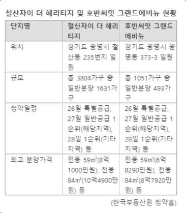 한편 두 단지의 일반공급 1순위 대상자는 모집공고일 기준으로 광명시 2년 이상 거주한 경우다. 2년 미만 거주 및 수도권 거주자는 기타 지역 1순위로 청약해야 한다. 두 단지 청약일정은 26일 특별공급을 시작으로 27일 해당지역 1순위, 28일 기타지역 1순위 순으로 진행된다.