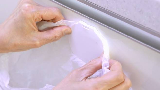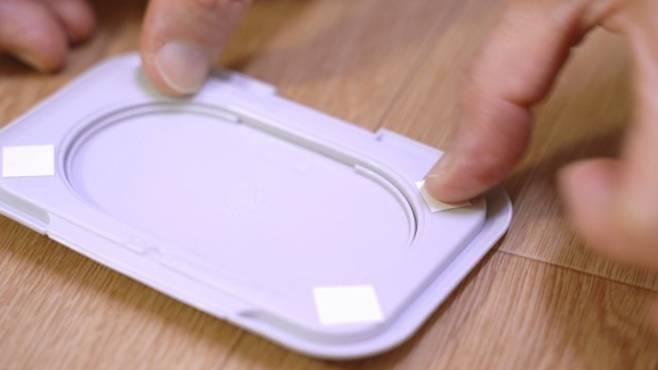 먼저 물티슈캡을 잘 분리한 후에 양면테이프를 붙여 주세요.