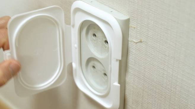 이렇게 사용하면 뚜껑을 열고 닫을 수 있어 좋아요. 특히 어린아이가 손에 닿을 수 있는 위치에 있는 콘센트에 딱! 붙여 놓으면 마음이 안심되는 것 같아요.