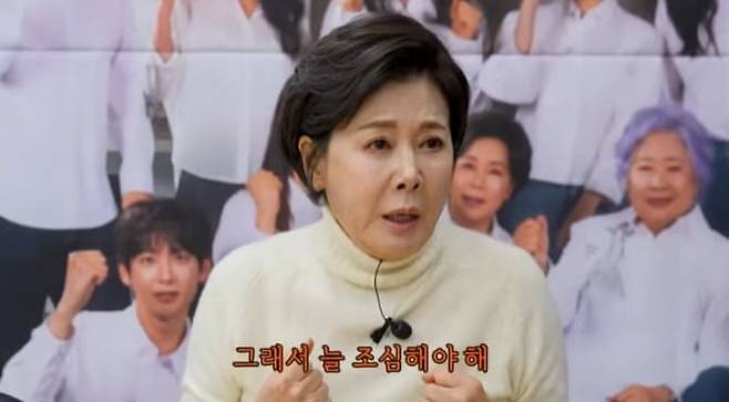 이어 박정수는 "특히나 얼굴이 예쁘장하니까 국민들이 조금 용서치 않는 게 있지 않냐. 그렇기 때문에 정말 조심해야 한다. 내 몸이 내가 아니다. 내가 극을 하고 있는데 만약에 넘어지면 (극 전체에) 지장을 주는 거 아니냐. 그래서 늘 조심해야 한다. 건강도 조심해야 하고 어디 갈 때도 조심해야 한다"고 강조했습니다. 이에 노주현은 "세상 풍파 안 겪은 여자애가 견디긴 힘들었을 것"이라 안타까워했습니다.