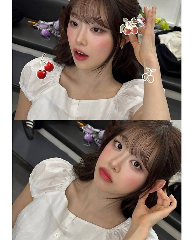 특히 메이크업에서는 말간 핑크톤 블러셔와 투명한 레드립으로 포인트를 주어, 생기 넘치면서도 과하지 않은 청순 메이크업의 정석을 보여줬다. 네티즌들은 "진짜 인형 아냐?", "앞머리 천재", "눈빛이 청초 그 자체"라며 감탄을 아끼지 않았다.