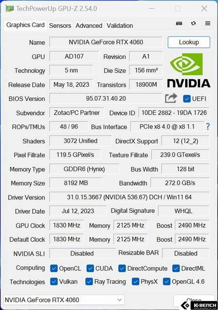 CPU는 AMD R5 5600으로 구성했으며, 메모리는 16GB를 기반으로 ZOTAC GAMING 지포스 RTX 4060 TWIN Edge OC White 제품을 장착해서 간단하게 3DMark 및 게임들을 동작 시켜보았다. 활용된 그래픽 드라이버는 536.67로 최신 버전을 이용했다.