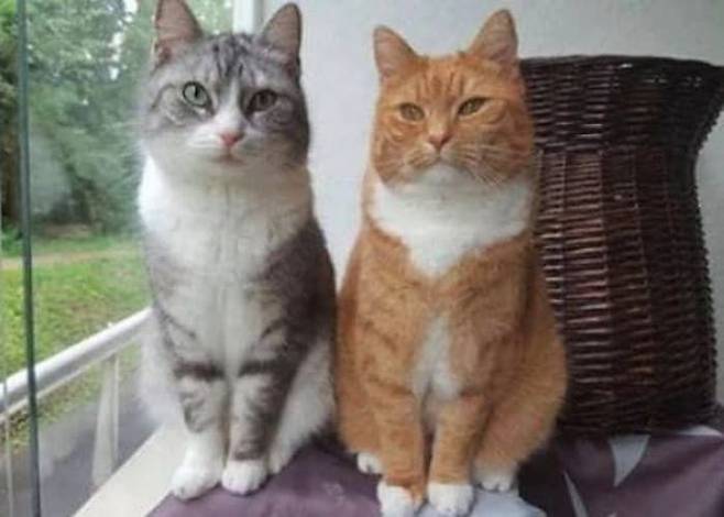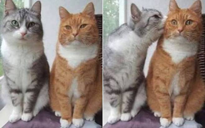 공개된 사진 속에는 두 고양이가 나란히 앉아 있는 모습이 담겨 있었는데요. 사실 이때까지만 하더라도 이 둘의 관계에는 물음표가 따라붙었습니다.