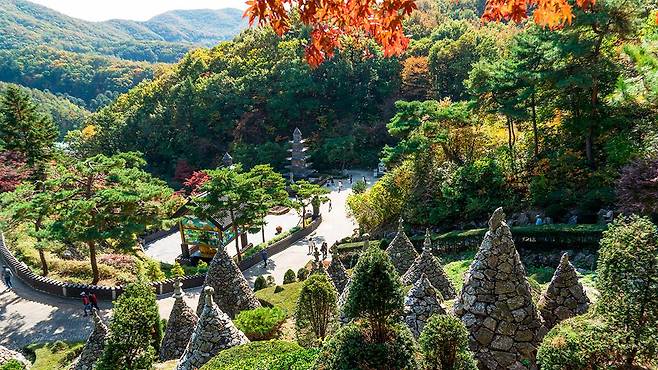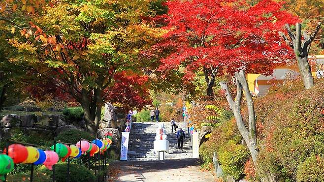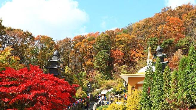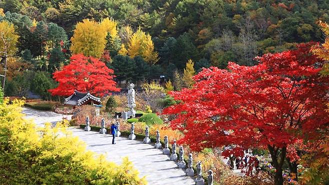 가을이면 연화산 자락의 와우정사는 불교 예술과 자연의 색채가 하나 되는 산사로 변모한다.