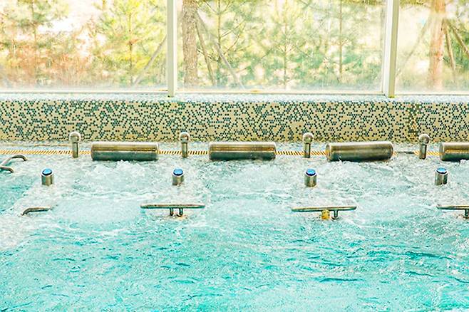 36℃로 유지되는 온수 속에서 강력한 수압과 부드러운 마사지 기능이 결합된 수(水)치료를 체험할 수 있습니다.