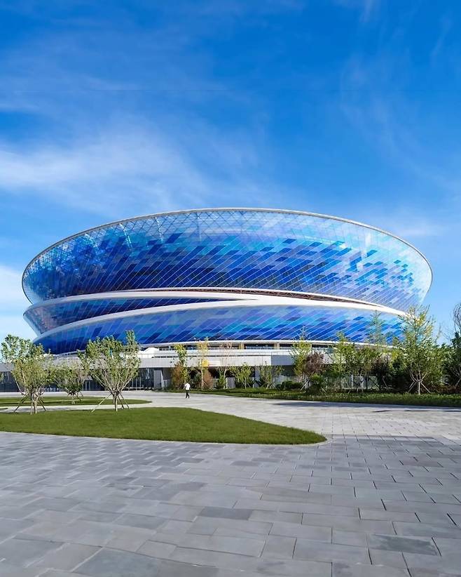 중국 다롄의 쑤오위완 축구경기장의 외관이 눈길을 끈다.