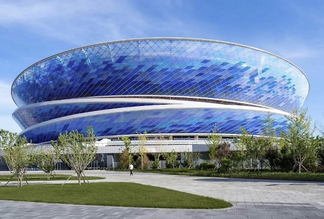 (엑스포츠뉴스 김환 기자) 중국 다롄의 쑤오위완 축구경기장의 외관이 눈길을 끈다.
