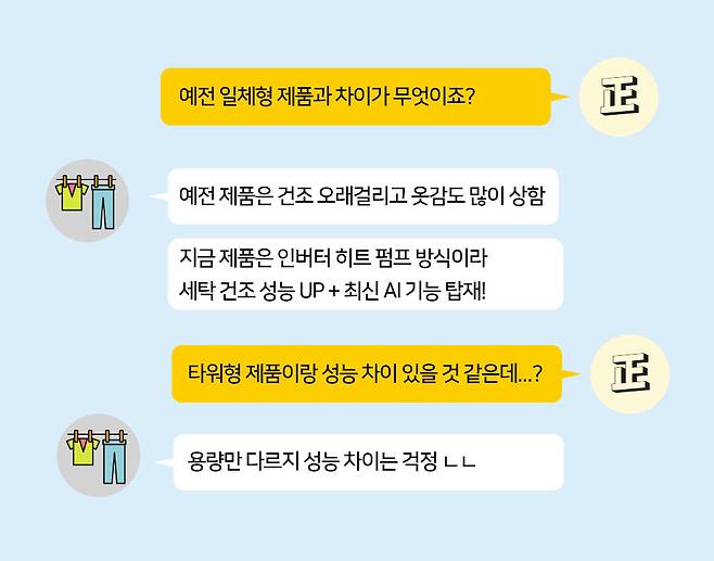 에디터 正 기존에 판매하던 워시 타워 같은 세트형 제품과 비교해서 세탁건조기는 어떤 차별성이 있을까요?